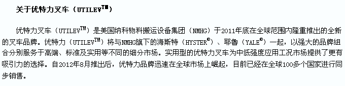 优特力为各行各业提供高性价比的物料搬运解决方案,在此次展览会上,将展出纳科旗下的实用型品牌-优特力UT30P内燃叉车以及多款优特力兄弟品牌海斯特仓储系列叉车和平衡重系列叉车。3月18日,在南京国际博览中心C001展位号,海斯特在等您!请洽海斯特公司市场部索取电子参观券免费换证入场!