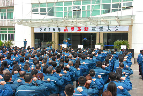 质量是构筑核心竞争力的坚强后盾,追求卓越品质一直是现代建设装备不断努力与前进的目标,2015年3月26日,现代(江苏)工程机械有限公司召开了“2015年品质革新宣誓大会”。