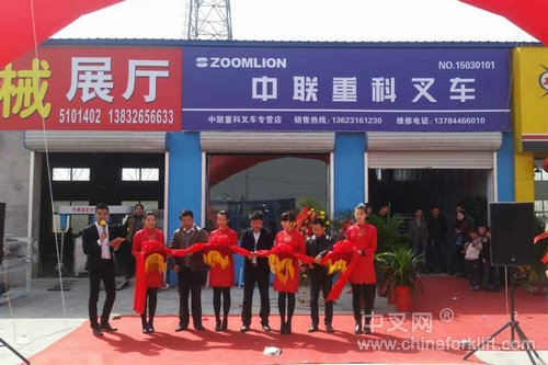 2015年3月28日,中联重科叉车位于天津廊坊左各庄的叉车销售专营店盛大开业,中联重科工业车辆销售公司领导及天津杰易升叉车销售有限公司总经理共同出席了剪彩仪式,开业当天吸引了众多客户前来观摩,开业现场气氛热烈。