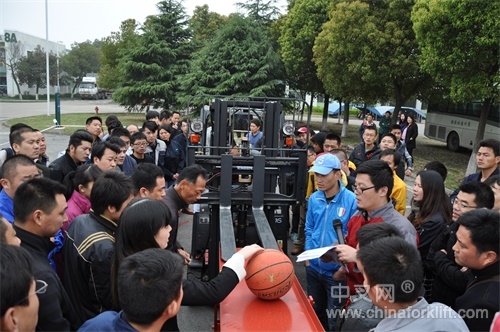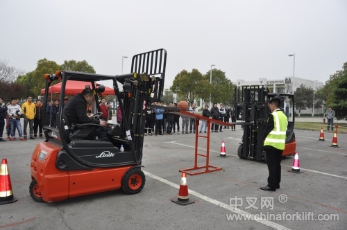 下午,历时数月比拼,共有包括太古可口可乐、安吉物流、高露洁、观致汽车、尚德、卡特彼勒、海尔、瓦克化学、百得等在内的苏皖大区的南京、无锡、苏州、泰州、徐州、南通、合肥、昆山等地27支优秀代表队参加了此次决赛。本次比赛设立的篮球接力赛,主要考核选手们的驾驶叉车的精准性和配合技巧。同时,更体现团队协作精神,不仅需要取、放篮球的精确度,还要在篮球通过跷跷板时有相当的默契,中途还要携带篮球正反向进行绕桩,非常考验选手们的叉车实操能力。