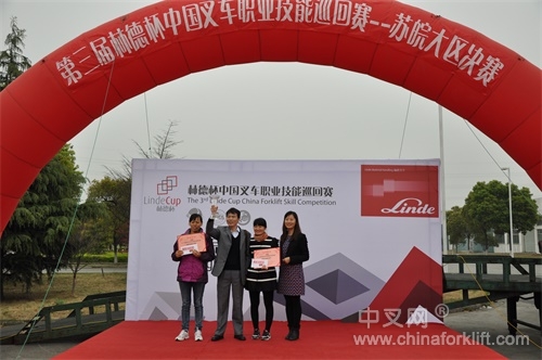 本次大赛所用叉车均为林德电动平衡重叉车E16C。比赛不仅考核选手们的操作水准,同时也在考验叉车的作业性能。林德叉车拥有良好的微动性能,卓越的品质传承了德国的优秀技术,高效的作业能力让选手们能够在极短的时间内完成高精准度的操作。经过数小时的激烈角逐,中外运高新物流(苏州)有限公司代表队夺得冠军,紧随其后的是观致汽车有限公司代表队夺得本次比赛的亚军,位列季军的为:卡特彼勒(徐州)有限公司、瓦克化学(张家港)有限公司和江苏安吉零部件物流有限公司的代表队,本次的最佳女队由佐敦涂料(张家港)有限公司夺得。其中,荣获最佳女队和冠亚军的代表队将共同携手代表苏皖大区同林德(中国)东部大区、北方大区、中部大区、南方大区等区域分别产生的获胜队伍决战2015年5月份的“林德杯”全国总决赛,并有机会赢取九月份在德国举办的全球总决赛晋级门票。