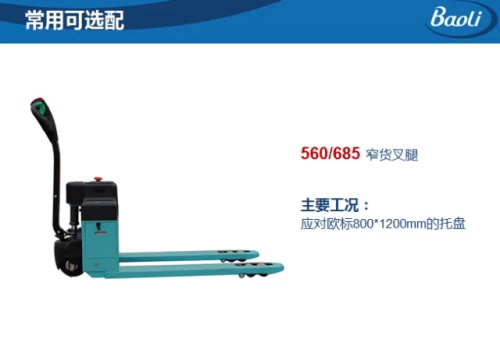 5、两种货叉腿尺寸560/685mm, 同时适用于国标和欧标托盘。