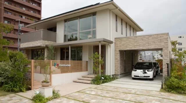 目前,丰田每年建造15,000户住宅。上图为配备了太阳电池板与电动车充电站的顶级住宅。它位于东京丰田城附近的两个“未来环保村(Ecoful Towns)”之一,两个场地共拥有67户这样的住宅,让人们可以一睹可持续未来的风采。