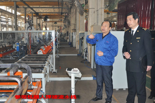 最后,李关长一行还参观了宝鸡合力金台工厂的生产现场。来宾们饶有兴趣的查看了焊接机器人、班组园地等,李关长对企业发展取得的成绩给予了充分肯定,并表示今后将进一步支持和帮助宝鸡合力发展进步。