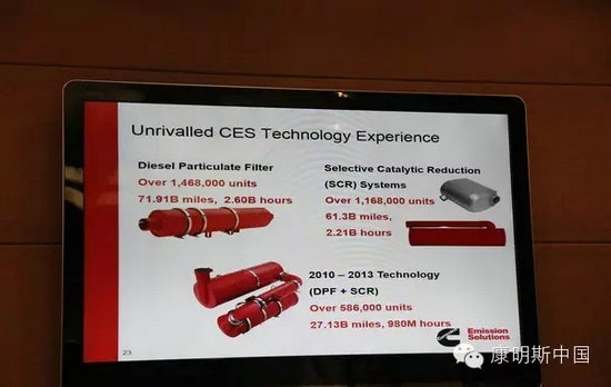 在2015美国中部卡车展上,康明斯展示了针对EPA2017排放法规的全新解决方案,实现了近乎零排放的标准。另外,康明斯还采用了创新的单体式结构,减少了尾气后处理的重量和体积,方便车辆布置和安装。
