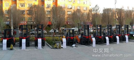 (现场外中联重科叉车展示)