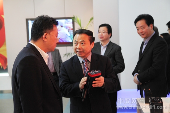 图为张天任董事长向媒体团一行介绍行业情况