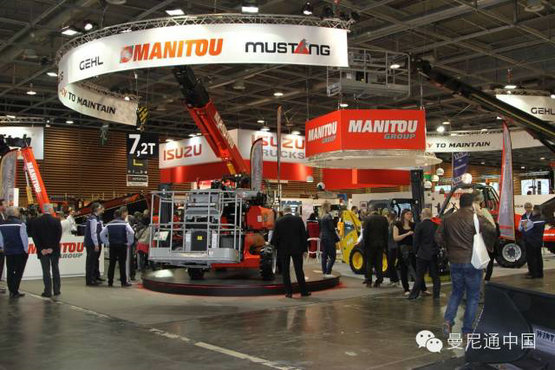 位于室内5B馆的曼尼通展台特别引人注目,特别是两款产品众多观众和记者好奇并驻足围观。全球最高的伸缩臂叉装车-曼尼通旋转型伸缩臂叉装车MRT 3255(举升高度32米,额定载荷5.5吨),首次正式向全球市场推出。还有一款革新型的专为租赁市场设计的高空作业平台-MAN’GO 12(举升高度12米,前伸距6米,平台载荷230公斤)。