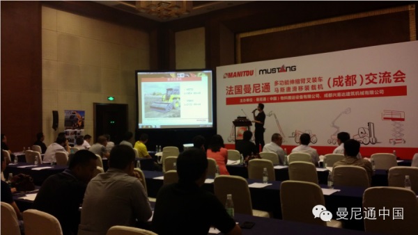下午2点左右,来宾们纷纷到达会议现场,并在签到板上签字。2:30会议正式开始,会议首先由成都兴易达建筑机械有限公司总经理谢兴志先生致辞,然后曼尼通中国区总经理王洪涛先生介绍曼尼通集团的发展历史,曼尼通西南区销售经理黄继锋向来宾分别介绍曼尼通的3款重点产品:伸缩臂叉装车、高空作业平台和马斯唐滑移装载机,及适合四川区域的应用。