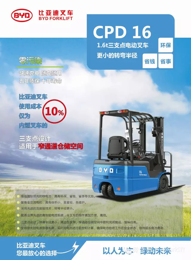 环保高效的窄通道搬运神器--比亚迪CPD16三支点叉车