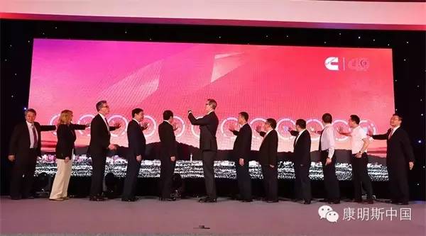 随着康明斯与东风汽车、福田汽车、陕汽、柳工、重庆机电、无锡动力、胜牌、怡和机器、康豪和天远科技等10家合资合作伙伴的领导共同按下启动按钮,合力凝聚的雁群形成了向上跃升的箭头,预示着康明斯与行业伙伴在新常态下进一步抓住上升机遇,协力发展,合作共赢。康明斯庆祝在华40周年活动进入高潮。