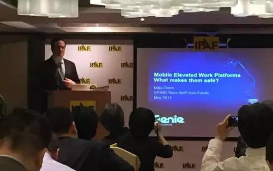 2015年5月26日,吉尼作为金牌赞助商亮相香港IPAF亚洲会议,近150人出席了该盛会。在会上了解到香港职业安全卫生协会从2013年起就开始要求使用自行式高空作业平台。那么它的安全性究竟有多高才能够获得官方支持呢?特雷克斯高空作业平台事业部亚太区副总裁和总经理Mike Davis先生在本次大会上向与会者一一介绍了令自行式高空作业平台日益安全的重要因素。