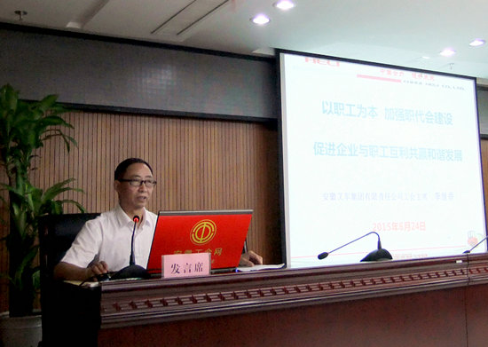 会上,公司不仅是15家书面发言单位之一,而且还是5家口头发言单位之一。李继香主席以图文并茂的形式,作了题为《以职工为本加强职代会建设 促进企业与职工互利共赢和谐发展》的典型经验介绍。他着重从完善机制,健全制度,加强职代会规范性建设;规范程序,注重实效,推进职代会务实运行;正向激励,多措并举,创新职工代表常任制等三个方面汇报交流了安徽合力开展厂务公开民主管理工作的基本情况和特色工作。