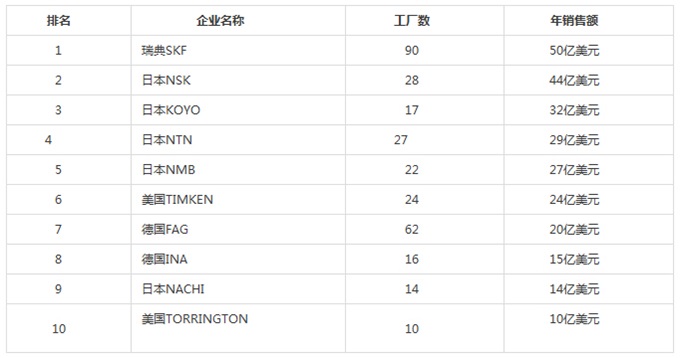 世界十大著名轴承生产企业排行榜(按销售额排序)