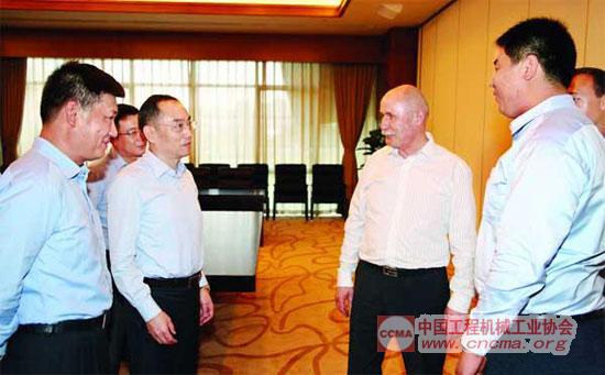 白俄罗斯驻华大使布里亚·维克托(右二)与中联重科董事长詹纯新(右三)亲切交谈
