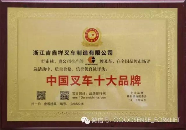 经过2个月紧张激烈的投票、资质审核以及消费者商誉评价,2015年度中国叉车十大品牌评选活动于6月16日完美降下帷幕。浙江吉鑫祥叉车制造有限公司生产的叉车,荣登“2015年中国叉车十大品牌”,并取得第四名的佳绩。