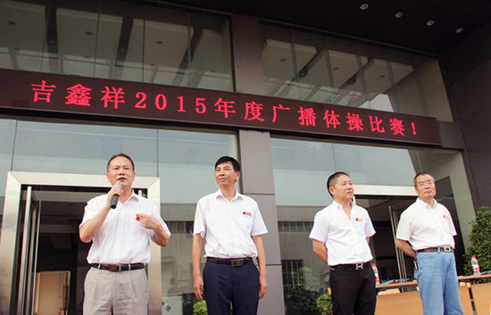 为使全体员工体操动作更加规范,公司特举办了此次广播操比赛,全公司300多名员工组成18支参赛队伍。比赛场上各代表队着装整洁,步伐矫健,口号嘹亮,动作整齐有力,英姿飒爽,充分展现了吉鑫祥员工奋发向上、朝气蓬勃、团结拼搏、锐意进取的精神风貌。经过紧张的角逐,比赛最终由管理部夺得第一名。在激烈的掌声中2015届吉鑫祥广播操比赛落下了帷幕。