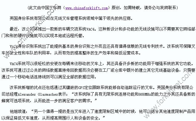 中叉网(www.chinaforklift.com)尊重合法版权,反对侵权盗版。(凡是我网所转载之文章,文中所有文字内容和图片视频之知识产权均系原作者和机构所有。文章内容观点,与本网无关。如有需要删除,敬请来电商榷!)