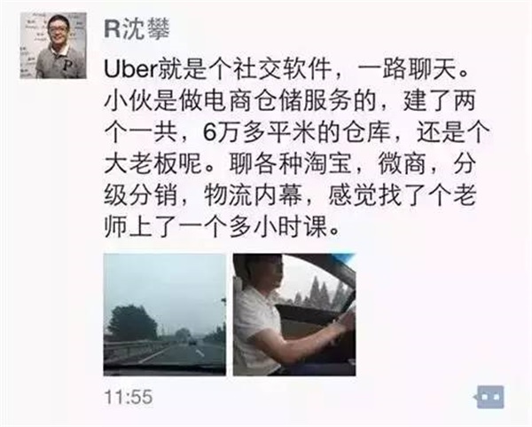 “共享”这种经济形态的变化让我们的社交形态也发生了变化,经济和社交,这两个很难讲哪个是因,哪个是果。Uber既是一种共享工具,也是一种社交工具。曾经在网上看过一个例子,几个人吃饭之后叫了一辆Uber。司机是个90后小伙子,海归硕士,在投行工作。车上聊了很多很久,不少想法一拍即合,又互相交换了微信名片。这种社交情景通过虚拟的互联网是很难触发的,只有线上线下搭配才能创造出人与人之间的社交红利。