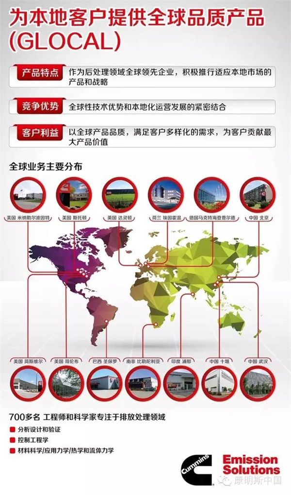 优秀之所以优秀,是因为全方位的核心竞争力,经过前两期《最了解发动机的排放处理厂商》和《无与伦比的技术经验》精彩解读,读者已经对康明斯排放处理的核心竞争优势有了初步了解。本期,小编将为大家带来第三大“法宝”--为本地客户量身打造全球品质产品(GLOCAL),深度解析康明斯排放处理系统如何将全球化与本地化完美结合。