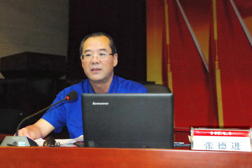 根据集团公司“三严三实”专题教育活动总体部署,7月16日下午,安徽叉车集团党委书记、董事长张德进赴联系点合肥铸锻厂作题为《忠实践行“三严三实”,促进合力又好又快发展》的专题党课。合肥铸锻厂党委书记、厂长解明国主持报告会,厂领导班子、全体中层管理人员及党员、骨干、班组长、团员代表等100余人参加了本次报告会。