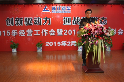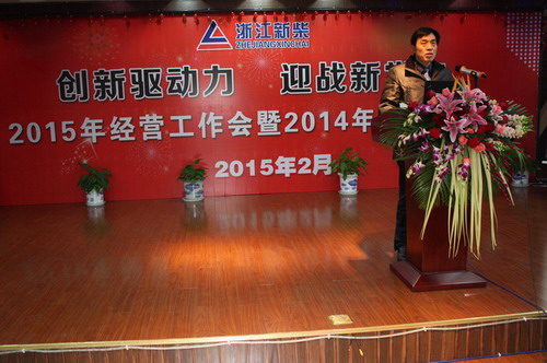 马蹄留胜迹,羊毫谱新歌,值此新春佳节来临之际,浙江新柴股份有限公司隆重召开以“创新驱动力,迎战新常态”为主题的2015年经营工作会暨2014年度先进表彰大会。张德范董事长、陈炎达总裁、王宝沪总经理及全体中层干部、班组(工段)长、营销线片区经理、党工团干部、各类先进等约170人出席了会议。