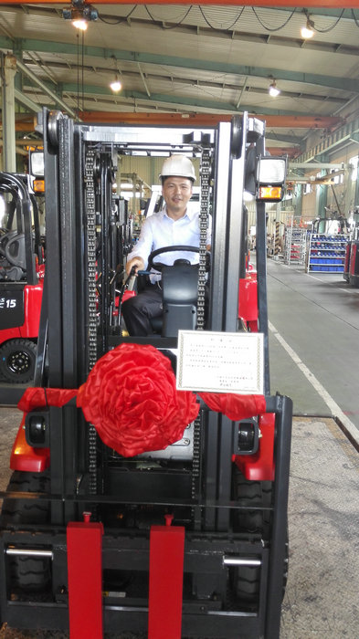 力至优叉车(上海)有限公司朱副部长成为首位试驾第25000台叉车的代表!
