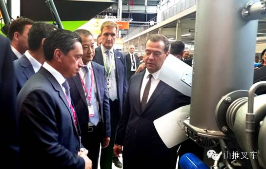 8日上午,国务院副总理汪洋出席展会开幕式并宣布俄罗斯创新展主宾国中国馆开馆,鼓励参展中国企业充分利用此次展会,展示自身工业制造和科技创新最新成果,与包括俄罗斯在内的各国企业积极交流互动,开展互利合作。下午,在集团合作公司雅宾斯克拖拉机厂展位上,俄罗斯国家总理梅德韦杰夫会见了山东重工总经理江奎、潍柴集团总经理助理张更生,参观山东重工展位。