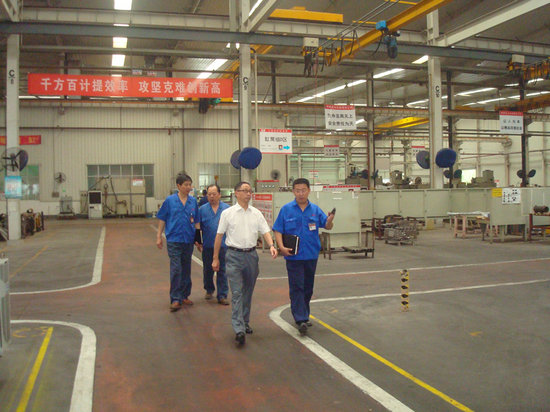 是日上午,李书记一行到达蚌埠液力后,随即召开座谈会。蚌埠液力领导班子就上半年经济指标完成的总体情况,以及落实党风廉政建设责任制等方面工作进行了汇报。午后,在蚌埠液力主要负责人的陪同下,李书记冒着高温,深入变矩器、短缸、工程油缸制造部和技术部等部门了解情况。
