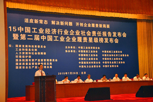 盛夏的北京暑意正浓,人民大会堂内庄严肃穆。7月26日,由中国工业经济联合会主办,国家发改委、工信部、国务院国资委等部委指导的“2015年中国工业经济行业企业社会责任报告发布会暨第二届中国工业企业履责星级榜发布仪式”在人民大会堂小礼堂召开。安徽合力总经济师张孟青代表公司出席发布会并作“安徽合力2014年度社会责任报告”发布;同时,应组委会邀请作为地方国企代表做了主题发言。