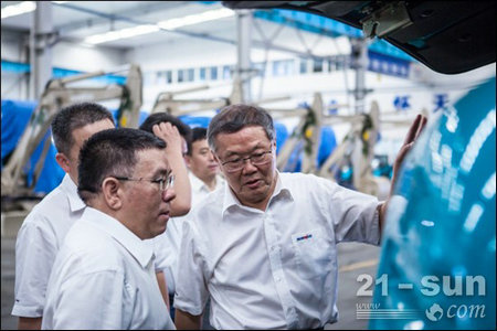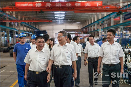 何清华董事长对曾光安一行冒着酷暑到访表示了热烈的欢迎。曾董事长表达了此次来访交流的目的,表示跟何董事长经常见面,但都时间匆匆,没能深入交流,此行在行业新常态环境下,希望与山河智能等同行企业加强沟通,共同探讨一些应对措施。何董事长表示,柳工在业内是一个非常受人尊敬的企业,很多地方值得山河学习。随后,双方针对行业预期、产业整合、海外市场、人员绩效、业务运营等方面开诚布公地交换了意见。随后,何董等陪同曾董一行参观了山河智能挖掘机生产车间及工业城地下工程装备生产车间。