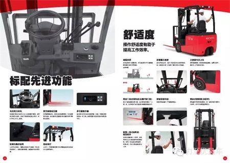 采用电动助力转向马达由SICOS-AC系统集中控制。设计简单又经济,相对于传统的液压助力转向,可节约三分之二能耗;货叉采用软着陆功能设计,当货叉向地面降落时,可以减慢货叉速度。此功能可以显著减少货叉撞击和冲击噪音(空载时);配备多功能显示器,不仅可以显示点评容量、车速,车辆的其他状态也一目了然。标准配置中还包括创新式载荷指示灯;与以往车型相比,腿部空间增加了55毫米(不包括某些型号)。标配还提供脚垫,提高操作员的舒适度。配备大尺寸、可视性高的尾灯可以清晰地指示制动和转向以及倒车操作。