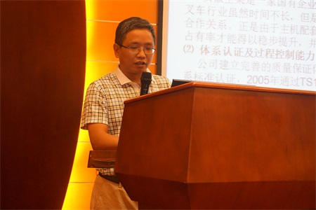 蚌埠液力机械公司区域销售经理李根先生在现场展示了其公司申报的创新产品及成果奖的两个项目:新型转向油缸和叉车油缸新型缓冲技术。