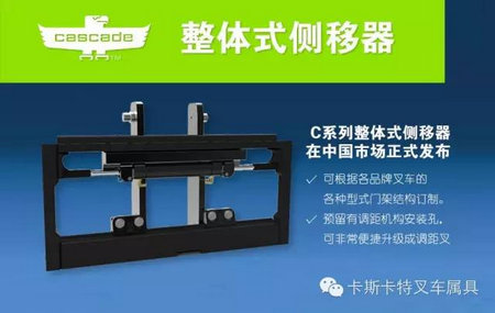 卡斯卡特正式在中国市场发布C系列整体式侧移器,并全面接受订单。 卡斯卡特C系列整体式侧移器承载能力最大可达3500kg,便于升级...