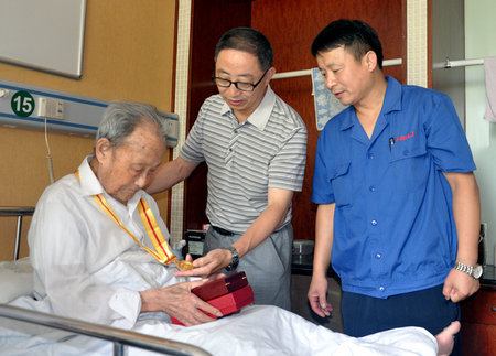仪式完毕,李书记在得知另外2名老同志因行动不便未能出席活动这一情况后,李书记冒着骄阳烈日,在老干部科主要负责人的陪同下先后来到合力3村公寓和职工医院病房,亲手将“抗战胜利70周年纪念章”、慰问金等送到老同志所处,带去了张德进董事长等公司领导的亲切问候和良好祝愿,并再三叮嘱老同志们要保重身体。