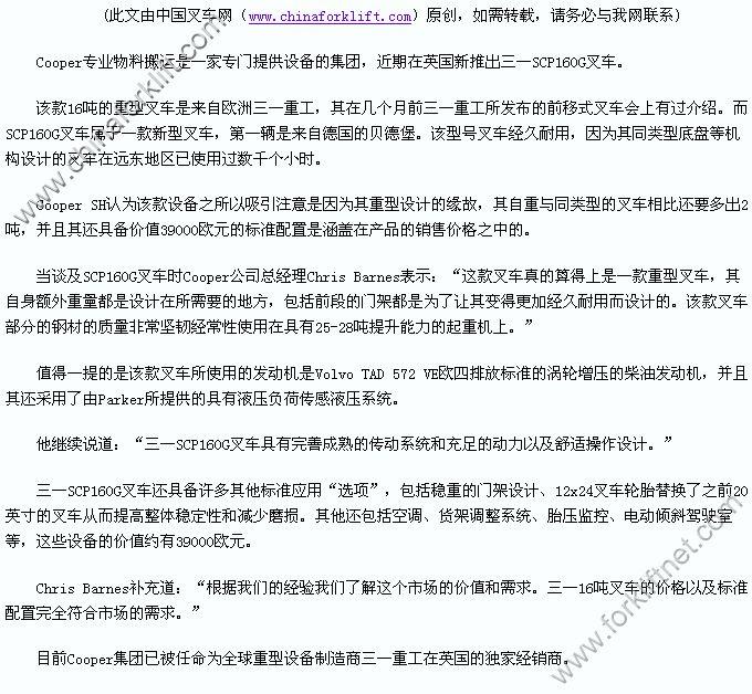 Cooper 新推三一重工16吨叉车