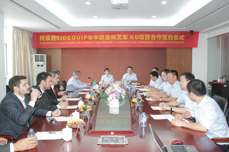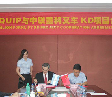 2015年9月9日,来自阿根廷SIDEQUIP公司数名高层代表到访中联重科叉车,并与中联重科叉车公司领导就产品KD合作项目达成一致,正式签约。自此,为期一周的KD项目洽谈圆满落幕,也是中联重科叉车探索海外合作发展模式创新的一次重大突破。