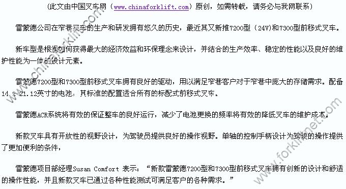雷蒙德新推前移式叉车操作性能卓越