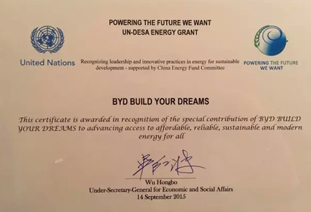 潘基文亲自授予比亚迪“联合国能源特别奖”