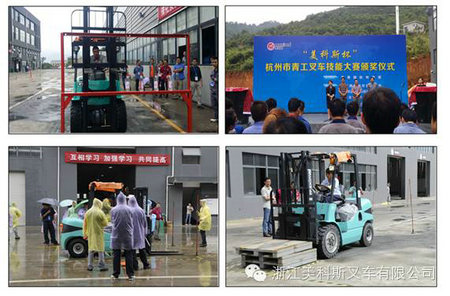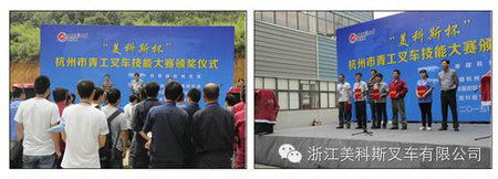 2015年9月23日由共青团杭州市委主办,富阳区市场监督管理局、共青团富阳区委及浙江美科斯叉车有限公司承办的2105年“美科斯杯”杭州市青工叉车技能大赛在我公司顺利举行。
