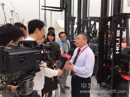 发布会之后,安徽叉车集团杨安国总经理接受了现场记者的采访,其中包括合力叉车如何应对国家节能环保等相关条款、如何满足欧美等各国化不同的标准以及如何应对当今智能化的发展等。杨总表示:“合力叉车的发展会随着社会和市场的需求,通过智能化设备和技术来提高和改善叉车的制造和研发技术,对于各国不同的排放标准合力会采用针对性的制造和生产,并且合力叉车会利用这些先进的技术有效的提高机械的动力和性能,从而最大限度的实现节能减排等相关需求。”
