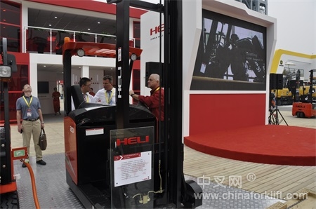 本次展会上推出的新品之一:CPD25-GD1Li,2.5吨锂电池叉车,采用可循环使用4000次容量保持75%以上的锂电池,寿命远超铅酸电池,高性能锂电总称拥有5年超长质保;在- 20°C下,放电效率超过88%,-40°C下,放电效率高达70%,冷库使用续航能力强;具有多节点安全闭环保护,充电“锁扣确认”功能,有效避免“热插拔”控制系统和BMS电源紧急断电,安全有效;无需补液、防尘,免日常维护、保养;具备零排放、低噪音、不含重金属、无滴漏腐蚀、无酸雾挥发等绿色环保的功能。