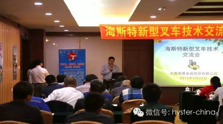随后,海斯特售后市场及采购总监致词,对交流会的召开表示祝贺并承诺在以后的售后服务工作方面给予客户更大支持。接下来,由海斯特销售总监对海斯特的发展历史以及市场发展情况作了详细的报告,使参会人员对海斯特的公司及品牌有了更深一步的认识和了解,也更加认同了海斯特的企业文化和发展前景。最后,由海斯特大车销售主管对海斯特大车新产品、新技术做了详细的报告,期间大家聚精会神、认真记录,中间穿插有奖问答,与会嘉宾踊跃参与,会场气氛非常热烈,技术交流会取得了预期的效果。