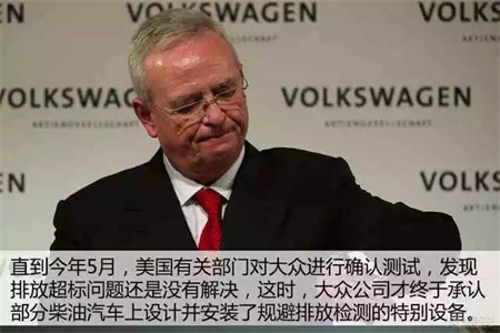 9月18日,美国政府勒令大众集团召回约48.2万辆涉案柴油车;同日,美国国家环境保护局宣布,大众集团承认欺诈行为。9月20日,大众集团CEO马丁·文德恩发表正式声明,称大众集团正在跟进此事,配合调查、不会隐瞒、愿意承担。