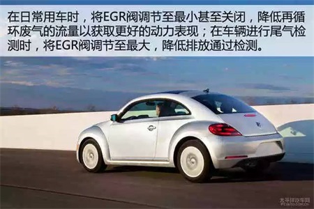 为了在日常用车过程中取得较好的动力输出,将EGR阀调节至最小甚至关闭,降低再循环废气的流量,但带来的后果就是排放过高。而在车辆进行尾气检测时,将EGR阀调节至最大,将尾气排放调节至合格的范围,以此来通过相关部门的检测。