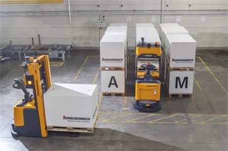 当有多台自动叉车运行在同一仓库内时,需要确保物流动线通畅不堵塞。由此,对每台自动叉车的指令分配也需要经过计算,与永恒力合作的国外知名激光引导设备供应商Danaher Motion 研发的运输管理系统,可实现与仓库管理系统配合,接收指令并分配给合适的叉车作业,并可处理交通堵塞和停顿的情况。例如,两辆自动叉车行驶靠近时,其安全机制都被触发而导致两车停止运行。同样,该系统还根据路径预定的顺序判断哪辆车可先通过并触发该车行驶。