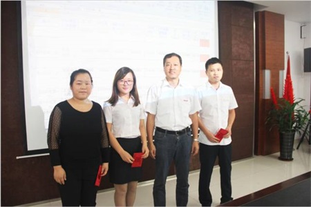 紧接着,董事长以及各职能中心总监为国际事业中心第三季度各大区销售评比前三名以及7、8、9月份评比得分冠军颁发了奖金,为他们取得的成绩给予鼓励。
