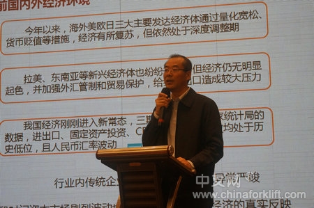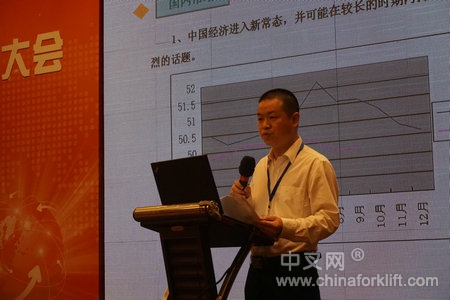 杭叉集团股份有限公司董事长秘书王阜西先生就“新常态下企业发展的思考和实践”,围绕“中国制造2025”“一带一路”“工业4.0”等时下热点事件,处于新常态下的叉车行业企业重新调整发展战略时机已经来临;杭叉将在提高运行质量、加大智能产品的研发、智慧工厂的建设三方面进行调整。中国目前正处于前期过剩产能消化期、经济增速换挡器、结构转型阵痛期“三期叠加”的关键时期,传统增长模式难于继而新的增长动能正在形成、人口红利消失、出口引擎失速,当前经济形势堪比2008年金融危机来临之时,甚至更为严峻,更为错综复杂。经济运行仍有下行压力,主要表现在实体企业生产经营活动回落,市场需求偏弱。整个行业受国家宏观调控及全球经济形势影响,持续低迷。中国制造业正在经历萎缩发展阵痛,并可能会持续相当长的一段时间,杭叉将围绕两个调整、两个坚持开展企业的转型升级工作:产品结构调整、用户服务策略调整,智能制造技改、管理和手段创新,为工业车辆行业的发展贡献更大力量。