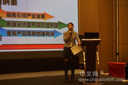 台励福机器设备(青岛)有限公司总经理林佳郁女士首次在年会上分享了台励福改善管理创新的经验,林总讲到:“作为较早进入中国大陆市场的台资品牌,历经了配合市场的产品调整阶段,现今并入丰田体系后,对企业在整个产业的市场定位发生了一定变化,但是,新的企业管理经验之间的融合也将体现在今后台励福的发展中。服务引领产业发展,整合模式创新,从研发、设计、组件、装备、物流、行销、品牌等领域创新,争做中国创造型企业。”她从服务引领产业发展、制造业转型产品价值升级、重视产品周期创造利润等三方面进行了生动演讲。
