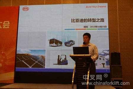 近年来,新能源产品在众多的领域已成为市场总趋势,作为新能源叉车行业的翘楚,比亚迪叉车销售有限公司总经理王惠明先生在年会上为大家介绍了比亚迪新能源体系和比亚迪叉车业务的市场战略权重及未来产业规划。